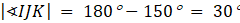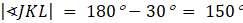 Kąt JKL jest przyległy do kąta 30°: