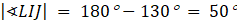 Kąt LIJ jest przyległy do kąta 130°: