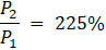 Jeśli pole ma być o 125% większe, to musi wynosić 225% początkowego pola: