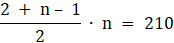 W tym zadaniu musisz znaleźć liczbę n, dla której podana równość jest prawdziwa, korzystając ze wzoru na sumę początkowych wyrazów ciągu arytmetycznego.