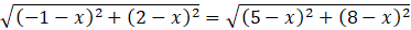 Zauważ, że skoro punkt leży na prostej o równaniu y = x to ma współrzędne (x, x). Wykorzystując wzór na odległość między punktami w układzie współrzędnych