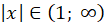 W tym przypadku x jest oddalony od 0 o ponad 1, więc wartość bezwzględna z x jest większa od 1.