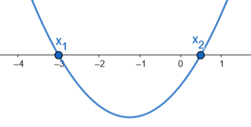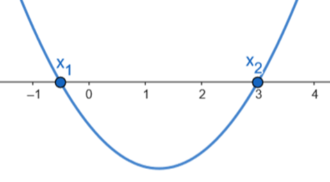 Na koniec wyznaczone rozwiązania zaznacz na osi OX i narysuj parabole o ramionach skierowanych w górę, jeśli współczynnik