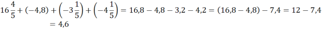 Zapisz ułamki w postaci dziesiętnej. Pamiętaj, dodawanie liczby ujemnej można zapisać jako odejmowanie liczby do niej przeciwnej. Odejmij od siebie liczby 16,8 i 4,8 (ułatwi ci to liczenie, ponieważ mają taką samą cyfrę po przecinku) i odejmij od siebie pozostałe liczby. Na koniec wykonaj odejmowanie.