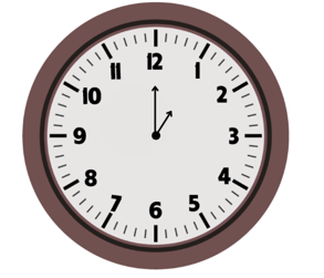 Dłuższa wskazówka pokazuje liczbę, którą należy pomnożyć przez 5, aby otrzymać minuty,
