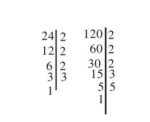 NWD(120, 24) = 2 ꞏ 2 ꞏ 2 ꞏ 3 = 24.