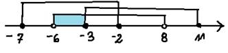 Narysuj oś liczbową. Zaznacz na osi podane przedziały liczbowe. Najpierw wykonaj działanie w nawiasie – wyznacz różnicę przedziałów liczbowych. Następnie wyznacz część wspólną przedziałów liczbowych.