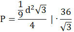 W tym podpunkcie oblicz obwód d trójkąta równobocznego o znanym polu P.