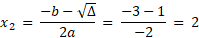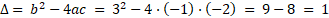 Wyznacz rozwiązania równania kwadratowego –x2 + 3x – 2 = 0.