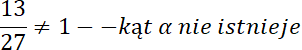 W tym zadaniu skorzystaj z twierdzenia jedynki trygonometrycznej: sin2α + cos2α = 1 oraz wzoru na tangens kąta α: tg α = cos α /sin α i sprawdź, czy wartości sinus i cosinus kąta podniesione do kwadratu będą równe liczbie 1. Otrzymany wynik nie jest równy liczbie 1, więc kąt α nie istnieje.