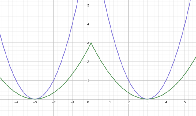 Wykonaj przekształcenie g(x) = f(|x|) – kolor fioletowy.