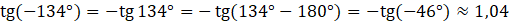 Dane są kąty: -166°, -134°, wyznacz wartości ich tangensów, wykorzystując odpowiednie wykresy.