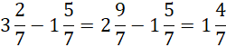 Doprowadź do wspólnego mianownika i odejmij ułamki. Zamień część całkowitą na ułamek, jeśli to konieczne.