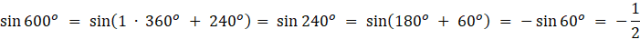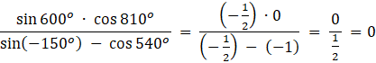 Obliczanie wartości wyrażenia możesz zacząć od wyznaczenia wartości funkcji trygonometrycznych podanych kątów, zapisując je w postaci sumy: pewnej wielokrotności kąta pełnego oraz kąta o mierze mniejszej od 360o. Następnie powinieneś skorzystać z odpowiednich wzorów redukcyjnych: