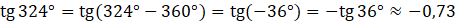 Dane są kąty: 290°, 324°, wyznacz wartości ich tangensów, wykorzystując odpowiednie wykresy.