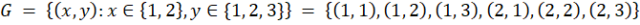 Zbiór G jest zbiorem par takich, że pierwsza liczba jest równa 1 lub 2, a druga liczba 1, 2 lub 3.