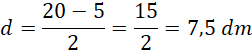 Obwód trójkąta to suma długości wszystkich jego boków. W tym przypadku dwa boki trójkąta mają taką samą długość, a trzeci znamy. Musisz odjąć od długości obwodu długość znanego boku, a następnie podzielić przez 2- otrzymasz wtedy długość boku d.