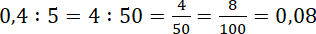 20% liczby 0,4 to piąta część liczby 0,4, czyli