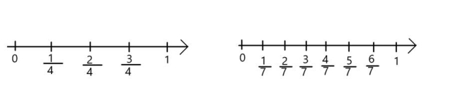 Podpisz punkty na osi odpowiednimi ułamkami.