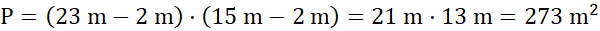 Na początek oblicz pole prostokątnego ogrodu. Następnie wylicz powierzchnię ogrodu bez pasa trawy: od każdego boku prostokąta odejmij 2 metry (ponieważ pas trawy biegnie po 1 metrze z każdej strony). Odejmij pole ogrodu bez trawnika od pola całego ogrodu – otrzymasz powierzchnię pasa trawy.