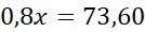 Oblicz, ile ceny początkowej obecnie wynosi cena plecaka. Zapisz ułamek jako procent i ułóż równanie: 0,8 ceny początkowej towaru wynosi 73,60 zł. Wykonaj dzielenie i zapisz odpowiedź.