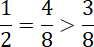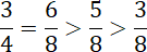 Na początku odczytaj współrzędne punktów z osi liczbowej. Zauważ, że jednostka osi podzielona jest na 8 części – oznacza to, że w mianowniku będzie liczba 8. Wykorzystaj rozszerzanie i skracanie ułamków, aby porównać ich wartości.