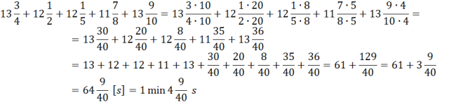 Dodaj do siebie wszystkie czasy. Aby zsumować ułamki, sprowadź je do wspólnego mianownika.