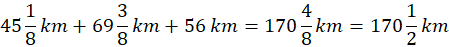 W tym zadaniu musisz obliczyć sumę dwóch ułamków i jednej liczby całkowitej, by poznać długość całego rajdu składającego się z etapów liczących: .
