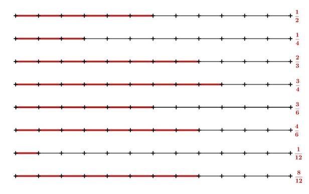 Zamaluj wskazane przez ułamki części poniższe odcinki.