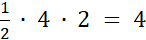 Jeśli poprowadzimy przekątną w kwadracie, to powstaną dwa trójkąty prostokątne równoramienne, których przeciwprostokątne są przekątną kwadratu. Wysokość takiego trójkąta opuszczona na jego przeciwprostokątną jest połową drugiej przekątnej, więc jest dwa razy krótsza od przeciwprostokątnej. Długość wysokości trójkąta: 4 : 2 = 2 cm. Pole trójkąta jest równe połowie iloczynu długości boku i opuszczonej na niego wysokości.