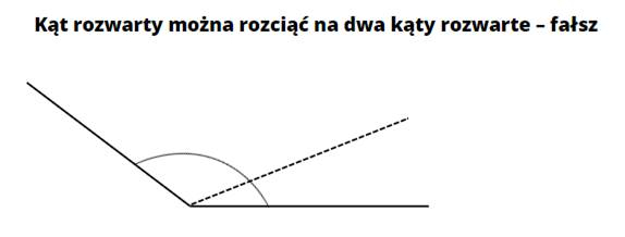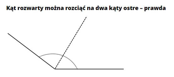 Kąt rozwarty można rozciąć na dwa kąty rozwarte. – fałsz (bo nawet 91° + 91° = 182° > 180°)