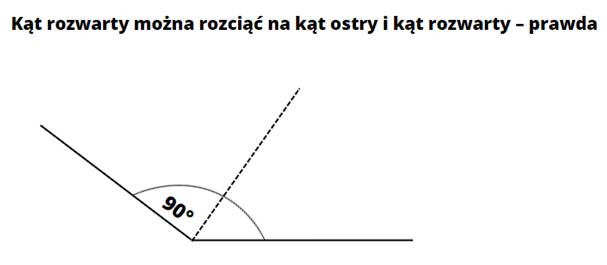 Kąt rozwarty można rozciąć na dwa kąty ostre. – prawda (np. 50° + 50° = 100° > 90°)