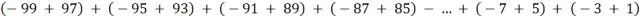 Zauważ, że wartość każdego nawiasu jest równa -2. W wyrażeniu takich nawiasów będzie 25, zatem wartość wyrażenia jest równa
