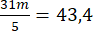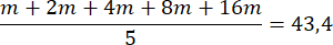 W tym zadaniu wyznacz m, wiedząc, że średnia arytmetyczna pięciu liczb, z których najmniejsza wynosi m, a każda następna jest dwa razy większa od poprzedniej, wynosi 43,4.