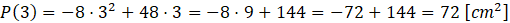 Największe pole będzie dla argumentu, w którym znajduje się wierzchołek tej funkcji, a więc: