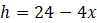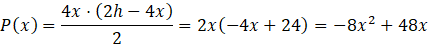 Zapisz wszystkie zależności zachodzące pomiędzy x i h. Następnie wyznacz największe pole za pomocą funkcji