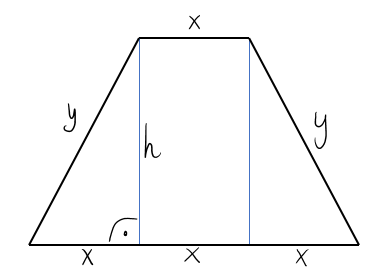 Aby obliczyć największe pole, zapisuje pole trapezu za pomocą funkcji: