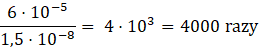 Jeżeli dzielisz liczby w notacji wykładniczej – wykładniki odejmujesz.