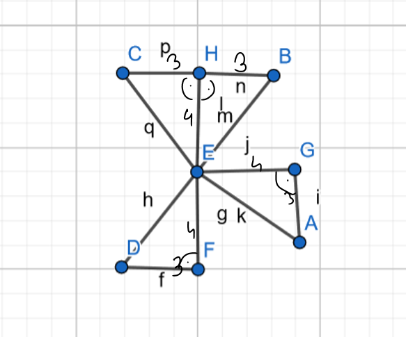 Tak jak na zamieszczonym rysunku, odcinki EA, EB, EC, ED to przeciwprostokątne trójkątów prostokątnych. Dorysuj trójkąty i widzisz, że przyprostokątne każdego z trójkątów wynoszą 3 i 4. Skoro przyprostokątne są równe, to przeciwprostokątne również.