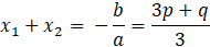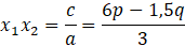 Aby obliczyć wartości współczynników p i q skorzystaj ze wzorów Viète’a. Z ich pomocą zapisz wzory na sumę i iloczyn miejsc zerowych, a następnie oblicz ich wartości liczbowe. Z wyznaczonych zależności utwórz układ równań, którego rozwiązaniami są szukane współczynniki.