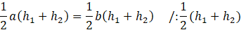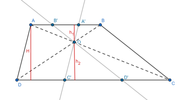 Zauważ, że wysokość trapezu ABCD jest sumą długości wysokości trójkątów DOC i AOB.