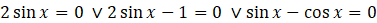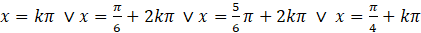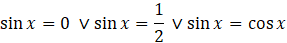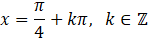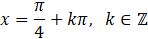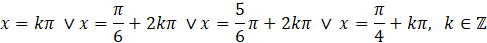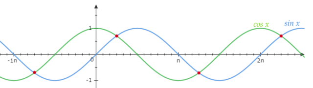 Narysuj wykresu funkcji sinus i cosinus i zaznacz miejsca ich przecięcia. W ten sposób rozwiążesz ostatnie równanie.