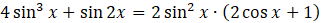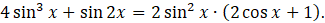 Skorzystaj ze wzoru na sinus podwojonego kąta. Przenieś wszystkie wartości na lewą stronę równania i wyłącz wspólny czynnik przed nawias.