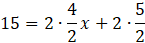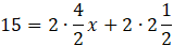 Obwód prostokąta = 2 boki dłuższe + 2 boki krótsze