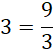 to trzy całości i kawałek w postaci jednej części z trzech, czyli 9 części z trzech plus jedna część z trzech