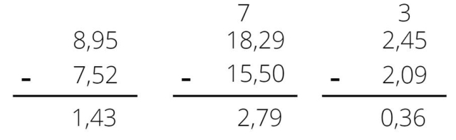 Wykonaj odejmowanie pisemne tak samo jak w przypadku liczb naturalnych. Przecinek „zrzuć” na dół pod kreskę.