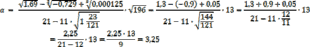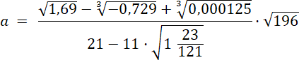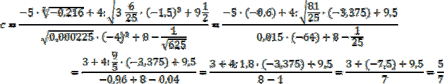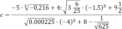 Korzystając z własności potęg i pierwiastków oblicz wartość liczb a, b i c. Należy zwracać uwagę na stopień pierwiastka oraz znaki.