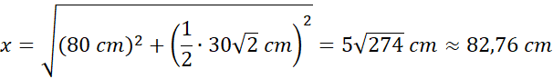 Następnie korzystając z tego samego twierdzenia, oblicz długość krawędzi bocznej powstałego ostrosłupa, będącą przeciwprostokątną trójkąta prostokątnego o przyprostokątnych równych wysokości ostrosłupa i połowie długości przekątnej podstawy. Wysokość jest równa odległości, w jakiej półka wisi od ściany.
