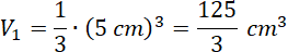 Wszystkie krawędzie ostrosłupa prawidłowego czworokątnego mają 5 cm. Objętość to:
