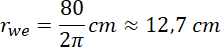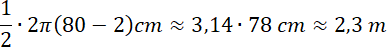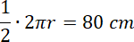 Oblicz promień wewnętrzny, pamiętając, że tym razem to połowa koła musi mieć obwód 80 cm: